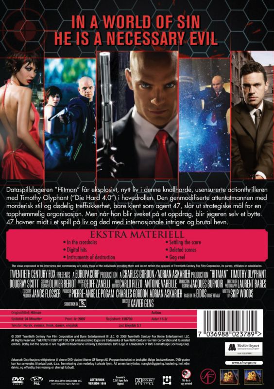 | Agent 47 (Timothy Olyphant) is the most mysterious and most elusive of professional killers. Known for thoroughness with which he goes to the end of his mission, he always obeys a strict protocol: extreme vigilance, extreme discretion and extreme care taken in the performance of its contracts. Patience and determination are his two favorite weapons. Nothing stops. His signature: a lack of evidence. Its specialty: disappearing once its mission accomplished. A real ghost, forced to discover the day Belicoff (Ulrich Thomsen), Russian candidate in the elections, it is a trap. With Interpol, the Russian secret service and three killers of his own agency on his tail, the Agent 47 is forced to break its own protocol to carry out his mission ... |