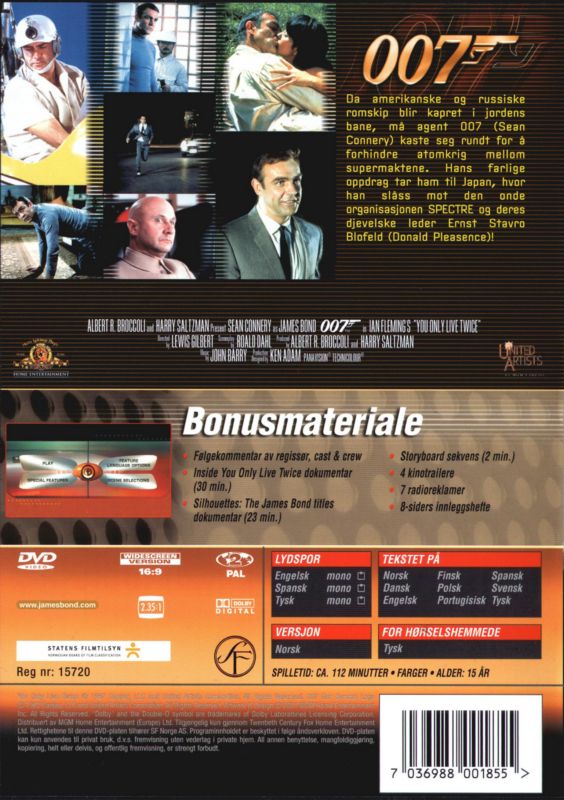 | When SPECTRE hijacks space capsules from both the U. S.A. and U. S.S. R., James Bond (Sean Connery) must travel to Japan to locate their secret base and prevent the two superpowers from going to war. There, he meets with the head of the Japanese branch of British Secret Service, Tiger Tanaka (Tetsuro Tamba), while fighting against the henchment of the leader of SPECTRE, Ernst Stavro Blofeld (Donald Pleasance). Helping Bond with his mission are M (Bernard Lee), Q (Desmond Llewelyn), Miss Moneypenny (Lois Maxwell), and Japanese agent Kissy Suzuki (Mie Hama). |